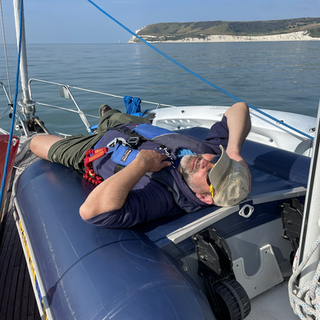 Best sailing: however, goes to a glorious F5 sail under blue skies & crashing foam as we beat all the way from Brighton to Chichester Harbour. Our 35 mile route turned in to 61 miles through the water. A tough, but exhilarating 10 hour sail at last.